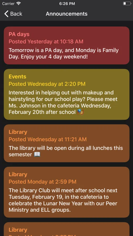 Always know what's going on in the school. Instantly check out a list of all the current school announcements, or view a slideshow of just the important ones. Get notifications anywhere, so you're always in the loop.