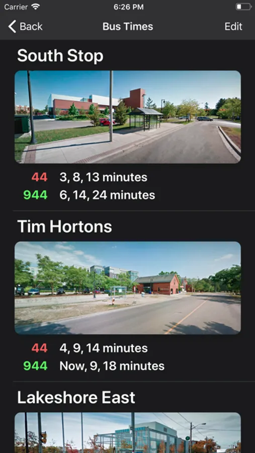 Quickly check live bus times for all the stops near the school.
