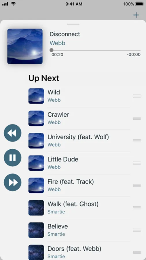 • Swipe on cells for easy access to play next or play last (individual songs or an album/playlist).
