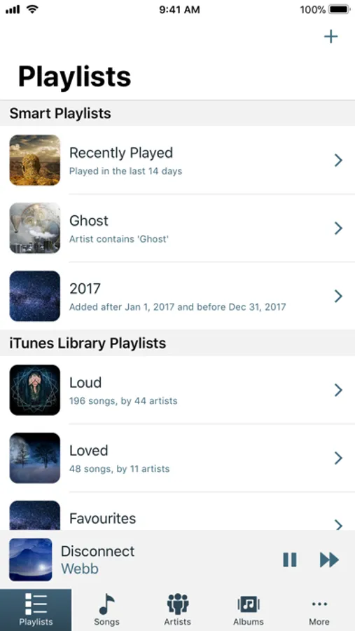 • View all your Playlists, Songs, Artists, Albums, Genres, Compilations and Composers.