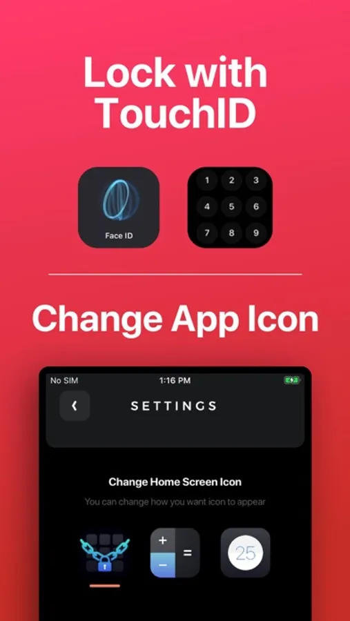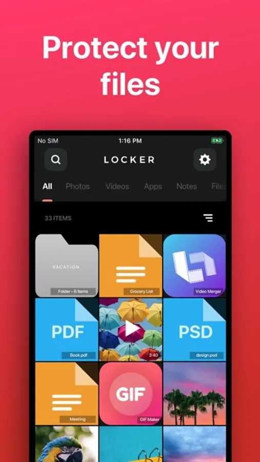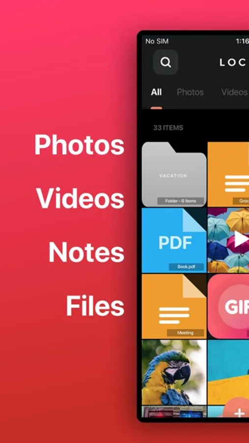 Store your Photos, Videos, Notes, Files and App Links behind FaceID/TouchID protection!