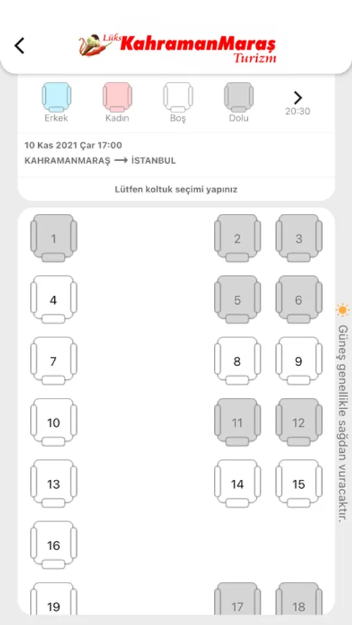 - İstediğiniz saatteki seferi seçebilirsiniz.