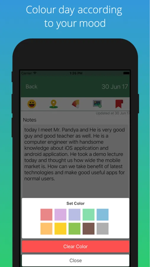A: You can set different color to different days. It will help you to filter diary days via color of this day.