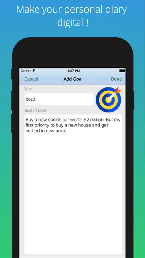 It is very efficient, fast navigating and never ending diary ! It is not only a simple diary but you can store photos, location (Where you been on that day - Like Travel Diary), Your mood even.
