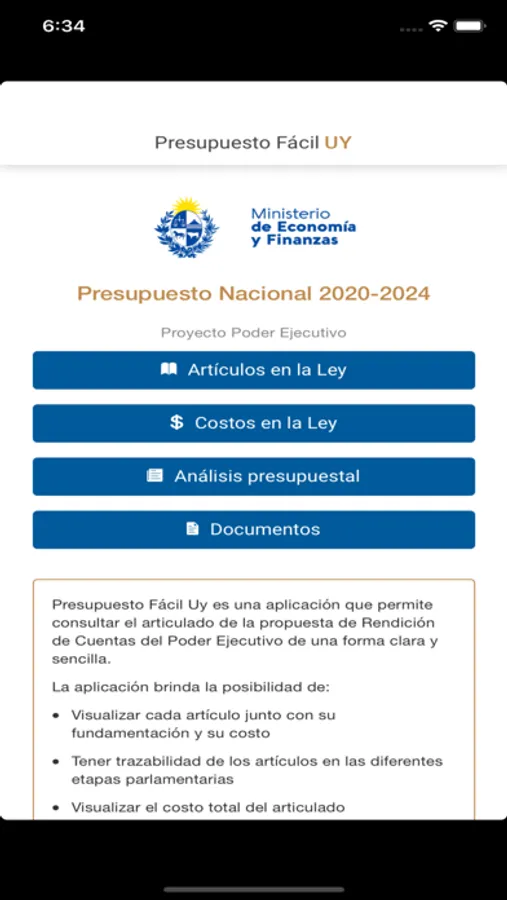 Presupuesto Fácil Uy es una aplicación que permite consultar el articulado de la propuesta de Presupuesto Nacional o de la Rendición de Cuentas del Poder Ejecutivo de una forma clara y sencilla.