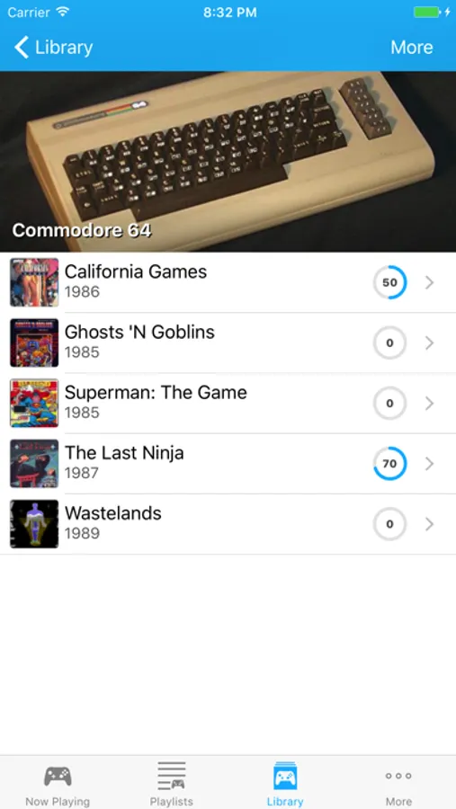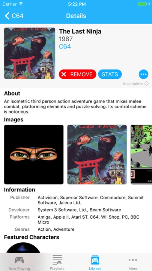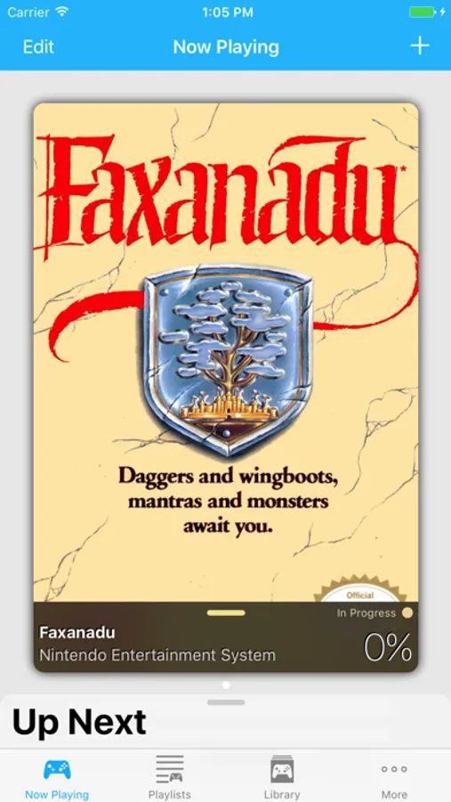 Now playing cards show game box art with an interface that allows you quickly update your progress in games, and see info about them.