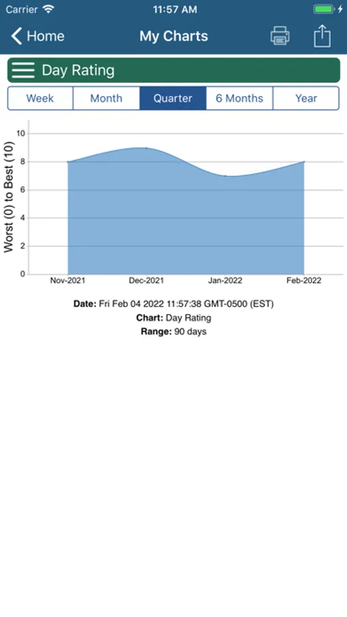 • Share meaningful, easy-to-read charts with your care team, so they can monitor your progress between visits and better understand how your condition is affecting you