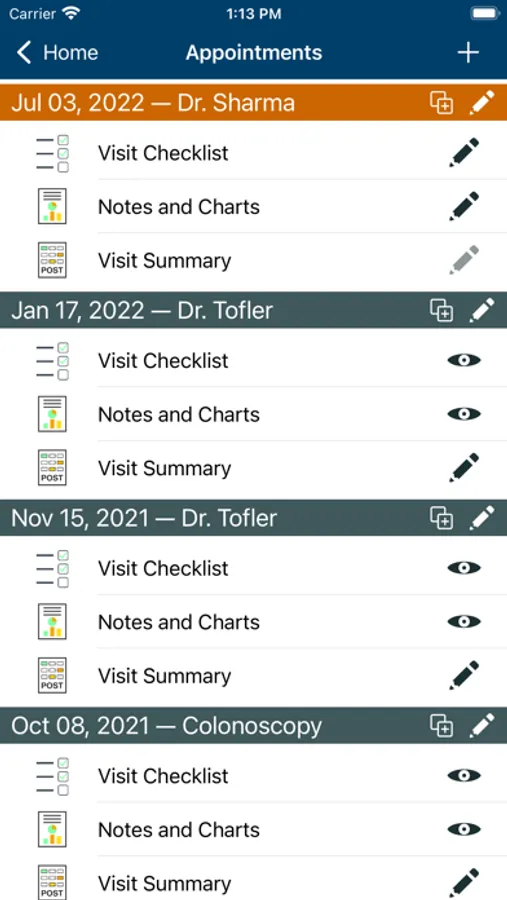 • Track your Dr. Appointments and use the Checklist and Notes & Charts report to prepare for your next visit.
