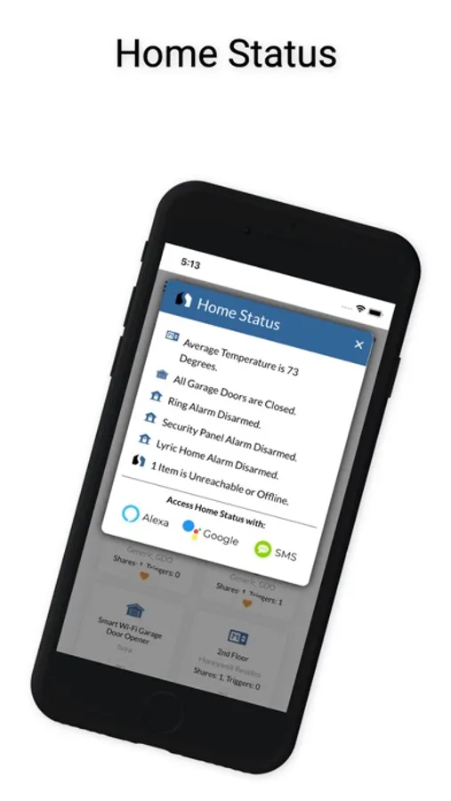 Step 2: Access and control items with at app or any one of a variety of voice compnaions and SMS.
