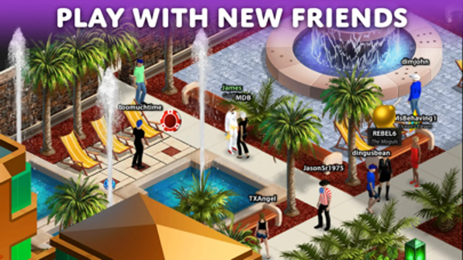 Play the tables or own the strip in this Vegas themed MMORPG that merges role-playing (RPG), tycoon, city building and casino games. Use your winnings in casino games like slots, poker, blackjack, bingo, solitaire, video poker and roulette as you rise from janitor to casino mogul.