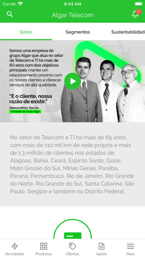 Plataforma que apresenta o portfólio de produtos corporativos da Algar Telecom com informações comerciais e técnicas, de maneira organizada e intuitiva. É um repositório único para consulta sobre serviços de TI, Internet, Voz, Dados, Outsourcing e UC.