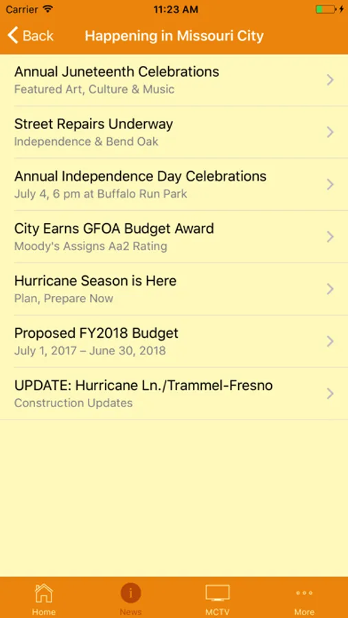 Stay connected with the official City of Missouri City Mobile App. Learn about current news, solid waste schedules, events and programs, emergency preparedness, public safety and watch MCTV live, sign up to volunteer and more.