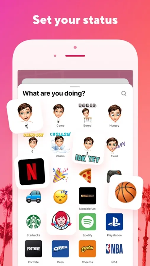 - Set your status with an Emoji, Sticker or Genie to let friends know what you’re up to!