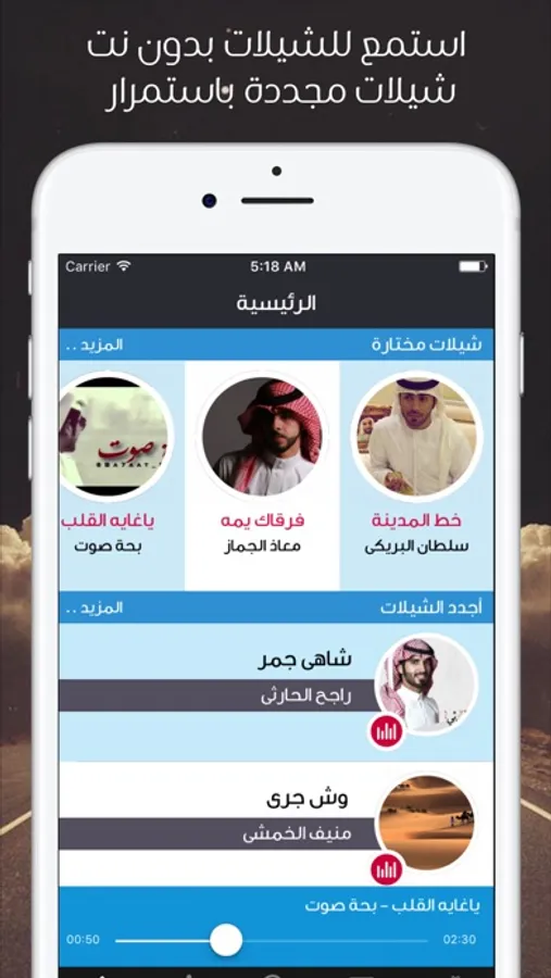 - مشغل شيلات مميز وانيق داخل التطبيق