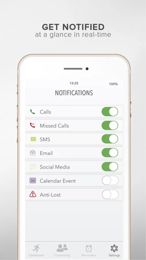 - Get notified on your wrist (SMS, emails, calendar event, social media)