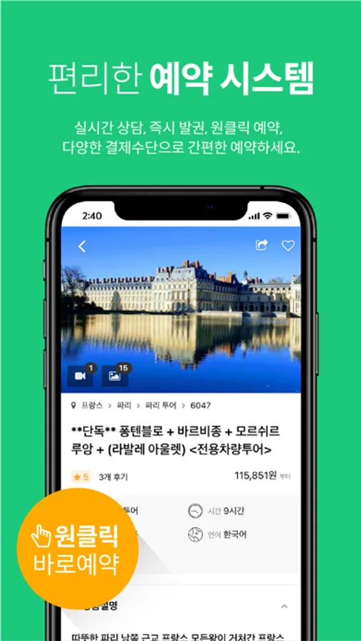 여행 전문가와의 1:1 상담, 원클릭 예약, 다양한 여행, 리얼 후기, 할인 쿠폰 등으로