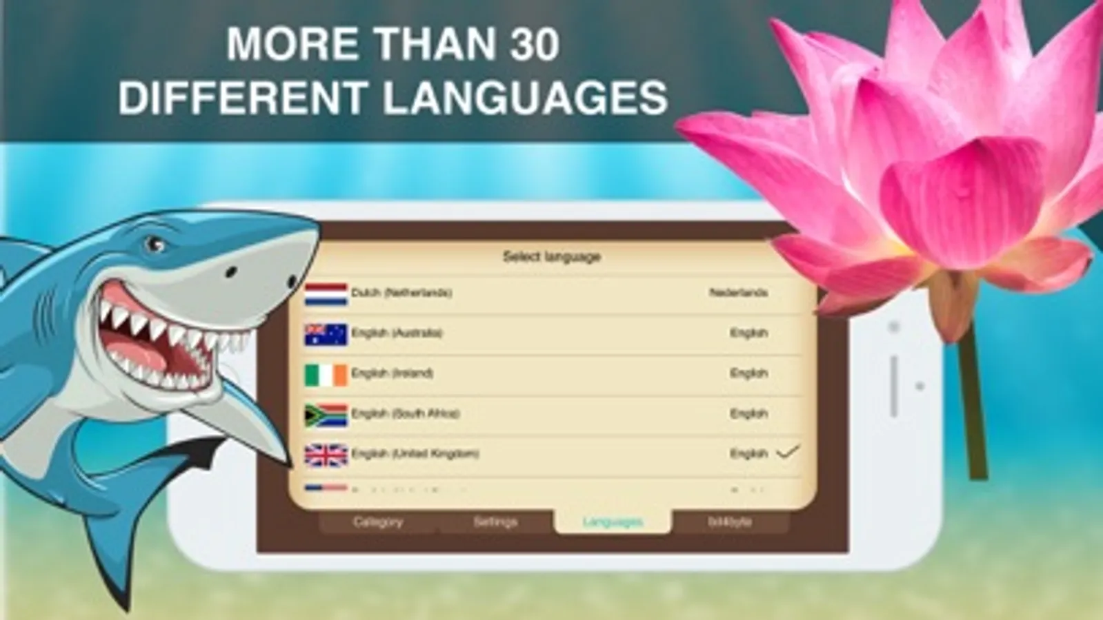 ⁃ Available in more than 30+ languages including English, French, German and Chinese