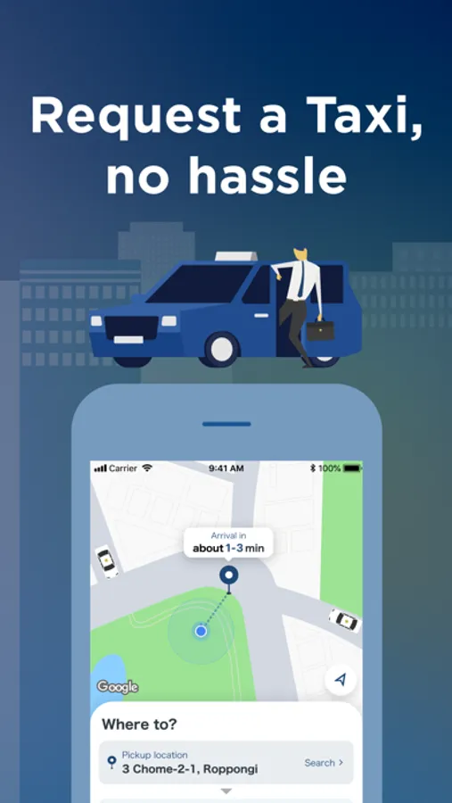 A service in which an exceptional driver picks you up in a luxury one-box car. You can easily place an order using the app. Currently you can request your ride from 15 wards* in Tokyo.