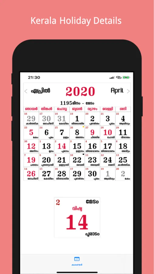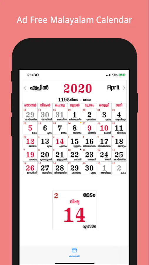 Malayalam Calendar is a free, non-photographic calendar for Malayalies around the globe.