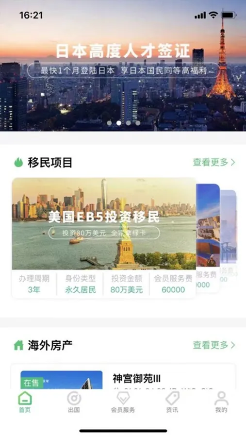 ● 移民项目:提供移民项目介绍、申请条件、办理流程、费用说明、材料清单、项目对比等移民项目信息展示服务