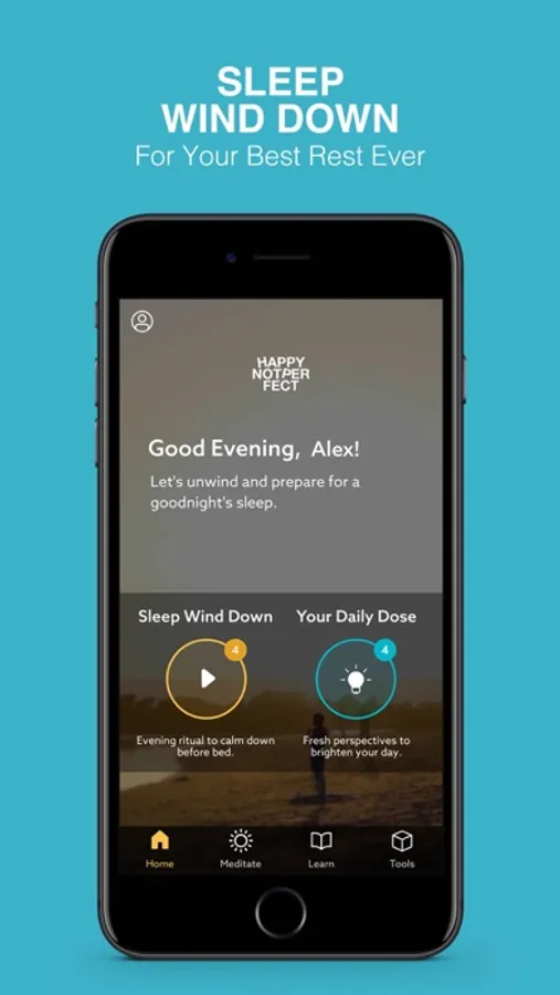 Feeling good is an inside job that requires practice. Jump into the daily Happiness Workout, a quick 8-step routine to help you boost your feel-good hormones and relax your nervous system anywhere, at any time. If you are having trouble sleeping, try out the Sleep Wind-Down (available after 7pm local time) before going to bed, and release those worries.