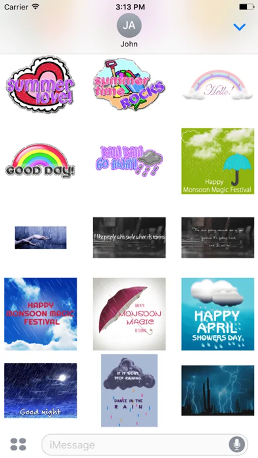 This app offers you a series of Summer & Spring & Monsoon & Winter stickers for your chat. Get amazing animated Summer & Spring & Monsoon & Winter stickers for iMessage on iOS phone and share the stickers on Facebook, Whatsapp, Messenger and many more social networks.
