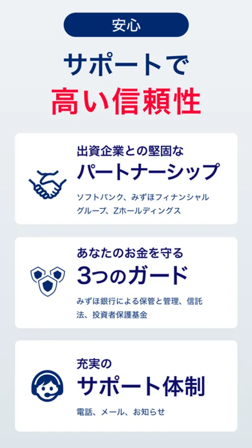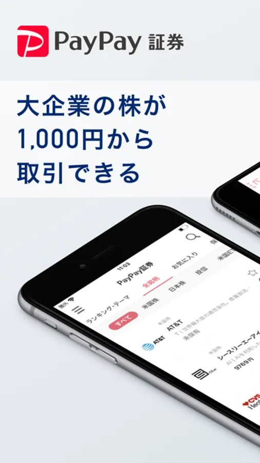 「資産運用を、より身近に」。PayPay証券は、未経験者の方でも日米株・投資信託を手軽にはじめられるアプリです。