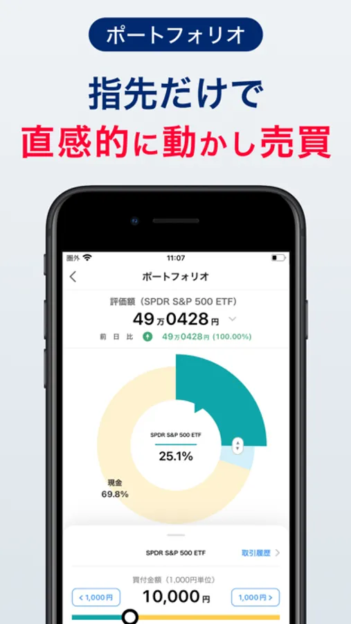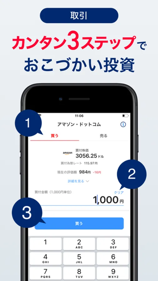 購入したい銘柄を選んだら最短3タップで取引完了。