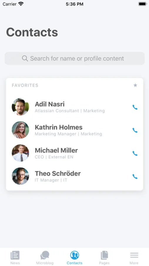 - Network with colleagues on mobile by initiating calls or emails directly from within Linchpin Mobile.