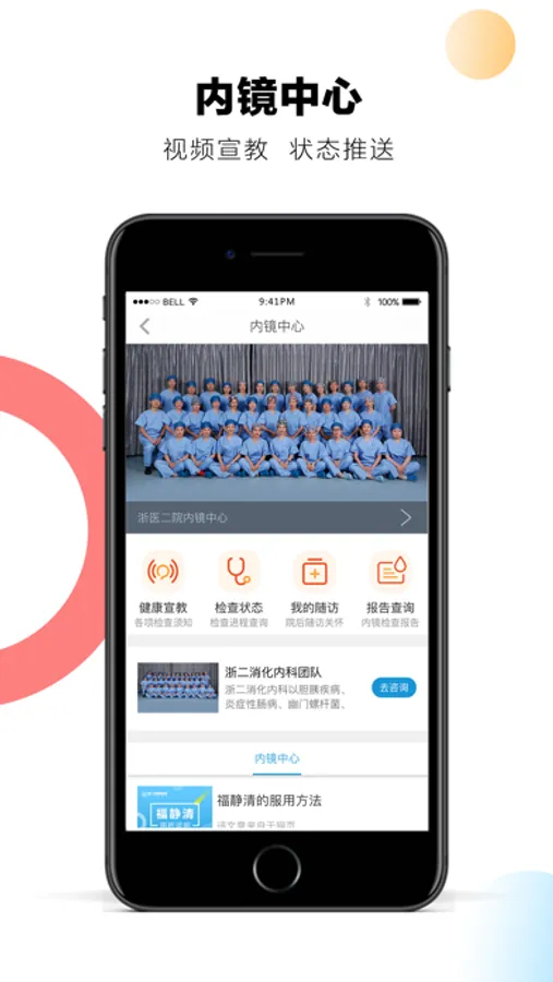 【内镜中心】提供健康宣教、检查状态查询、报告查询及线上随访等服务。