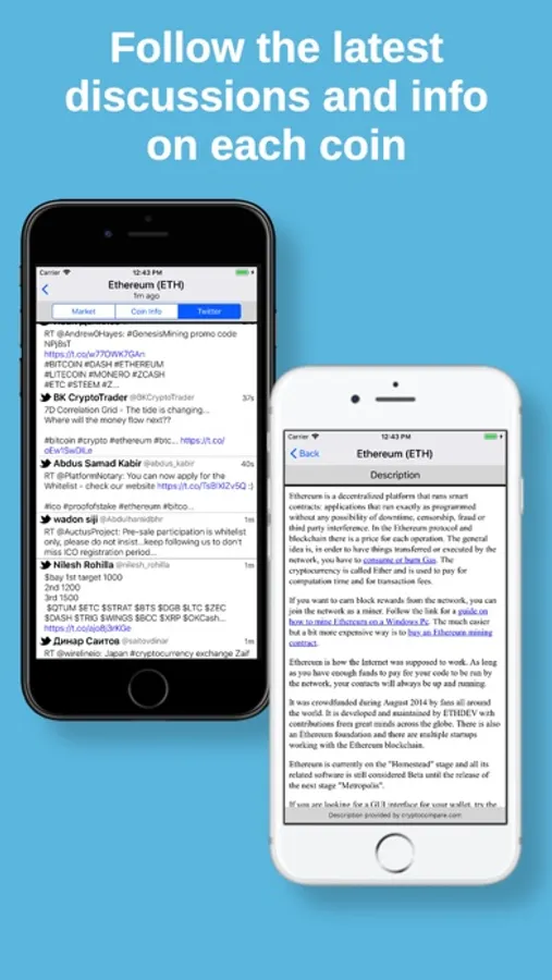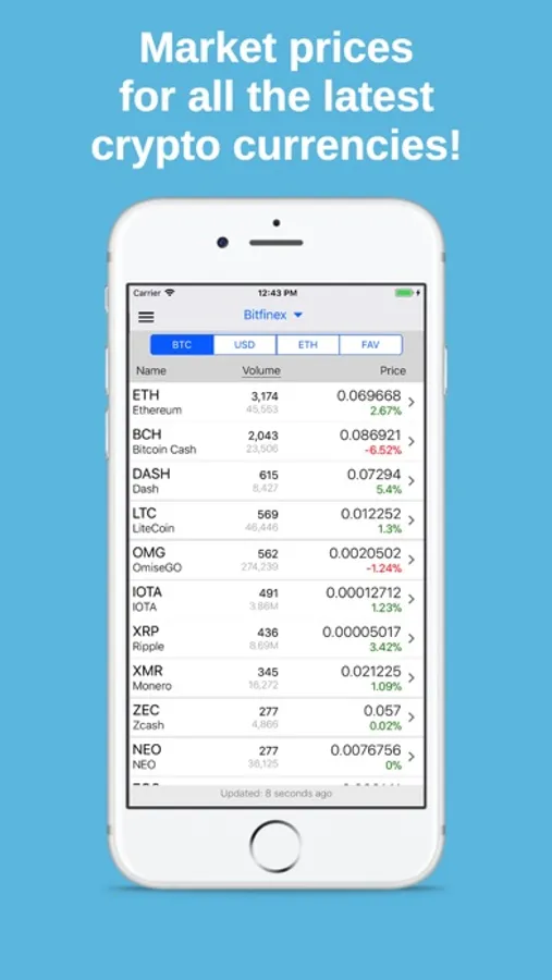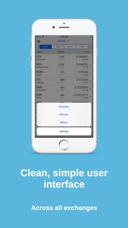 Cryptocurrencies such as Bitcoin, Ethereum and Litecoin are in use throughout the Internet and traded on various exchanges throughout the world. Crypto Markets allows you to monitor your favorite crypto-currency trading valuations on various exchanges. More than 100 cryptocurriencies supported across exchanges such as Poloniex, BitFinex, Bittrex, GDAX and more coming. Use Crypto Markets to check the trading valuation of each of your cryptocurrencies and it's available completely FREE!