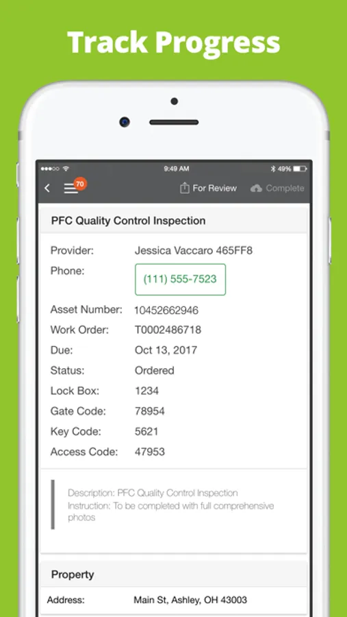 Mobile property management application enabling fast and efficient interaction between management companies and vendors, facilitating end-to-end vendor visibility and tracking proof of service at properties.