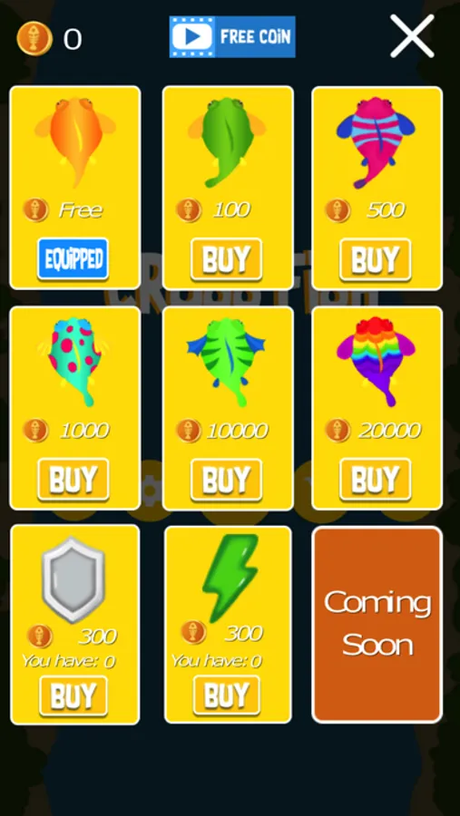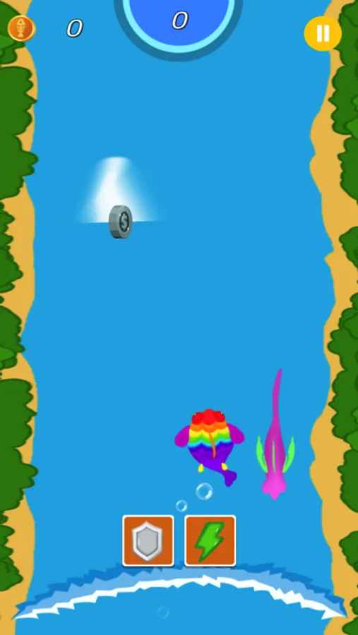 - Each time play, you will get a coin when you drag the fish bump into power-ups on the river. Each time click ads in the shop, you will also get a coin as award.