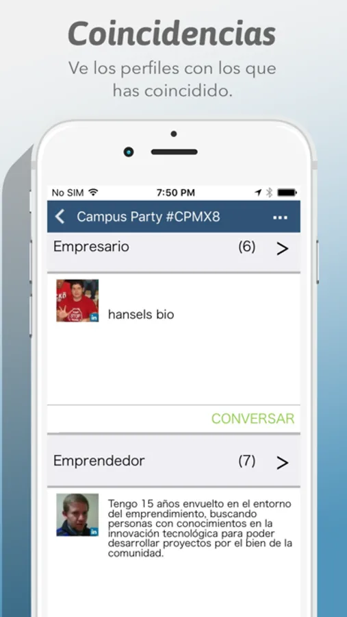 Conectar con profesionales que asisten al mismo evento que tu ahora es más sencillo, encuentra a profesionales que estas buscando y permite que te encuentren para que puedas conversar con ellos y amplía tus posibilidades profesionales.