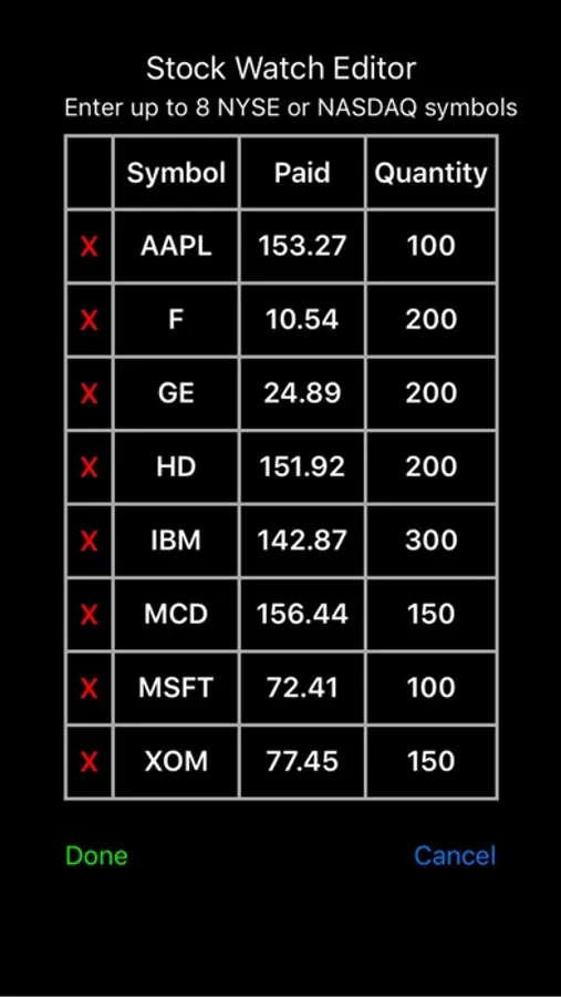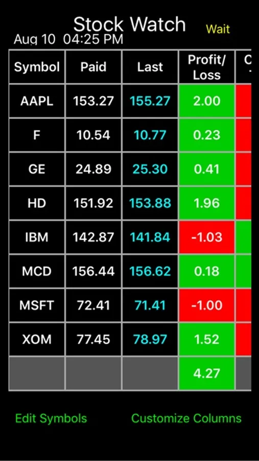 Stock Watch allows you to watch up to 8 NYSE or NASDAQ stocks. Based on the price you paid for the stock and how many shares you own when compared to the current* share price, you are able to easily see the overall monetary gain or loss for each stock. Even if you don’t own the stock, you are still able to watch the stock’s progress which can give you a better understanding of the stock’s trends.