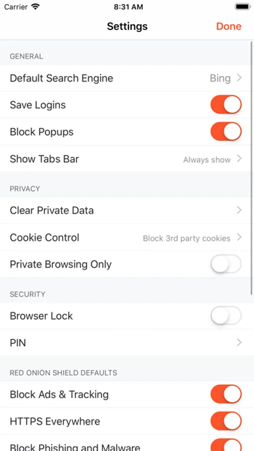 We made the app with your anonymity in mind from the ground up. The app use the new iOS Network Tunneling feature to now tunnel all traffic over the Tor anonymization network, greatly improving your speed and browsing experience.