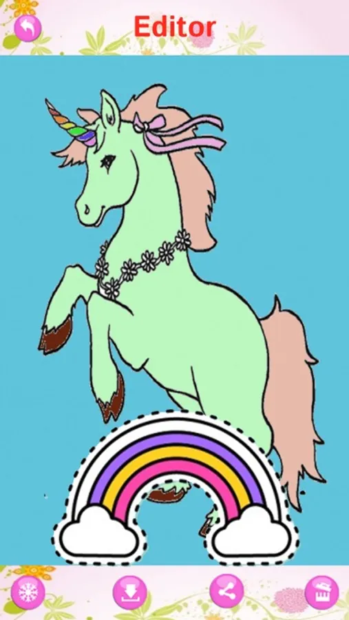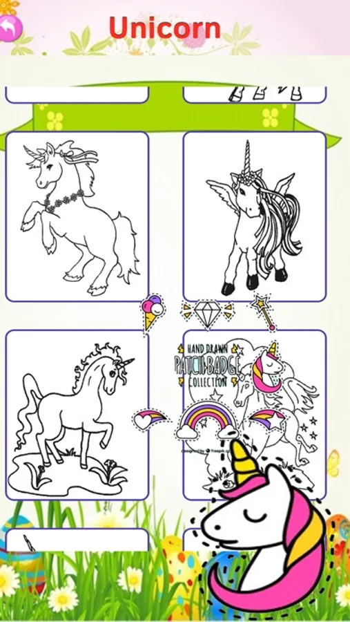 The application of coloring pages for kids compose many cute cartoon such as Cute Unicorn.