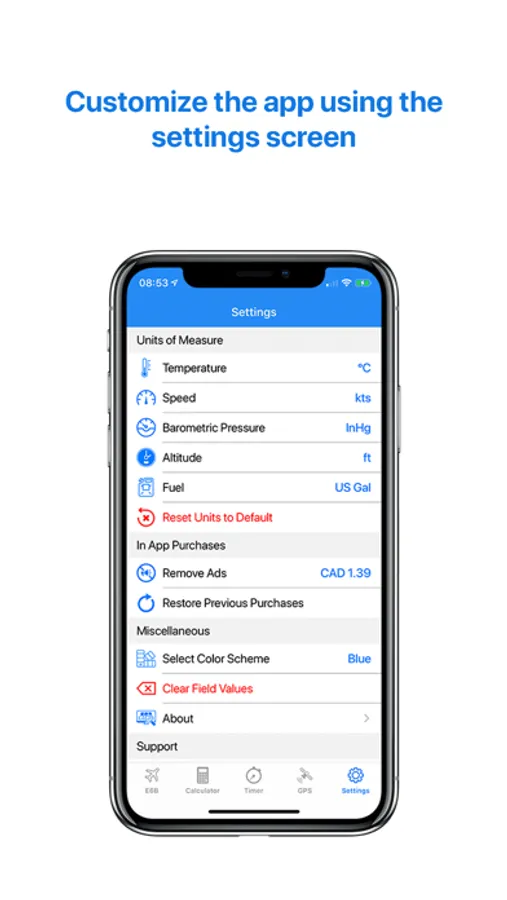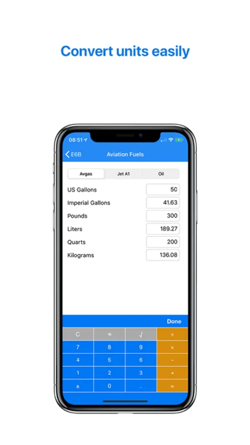 NoseApp E6B supports multiple units of measure for use in different regions.