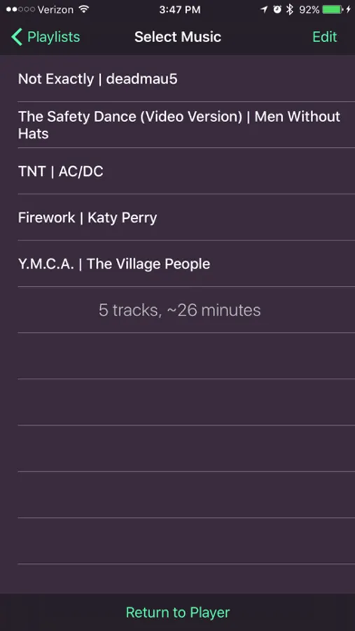 You can also create running playlists ahead of time in Accelerun, helping reduce the mid-run interruption of changing music. Music can be selected from your device's Music Library, and now YouTube videos can be added to your list! (Note: YouTube requires an active data connection during the run.)