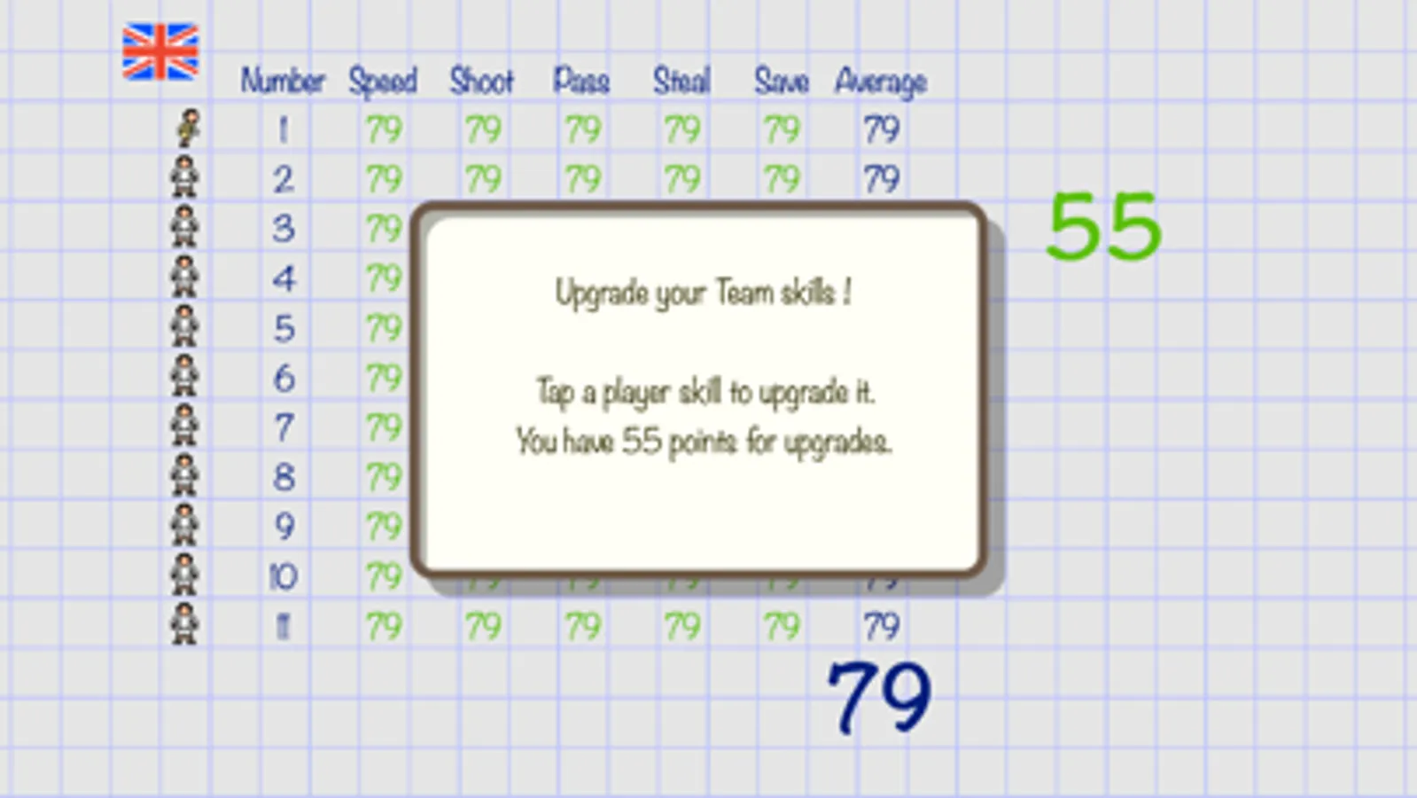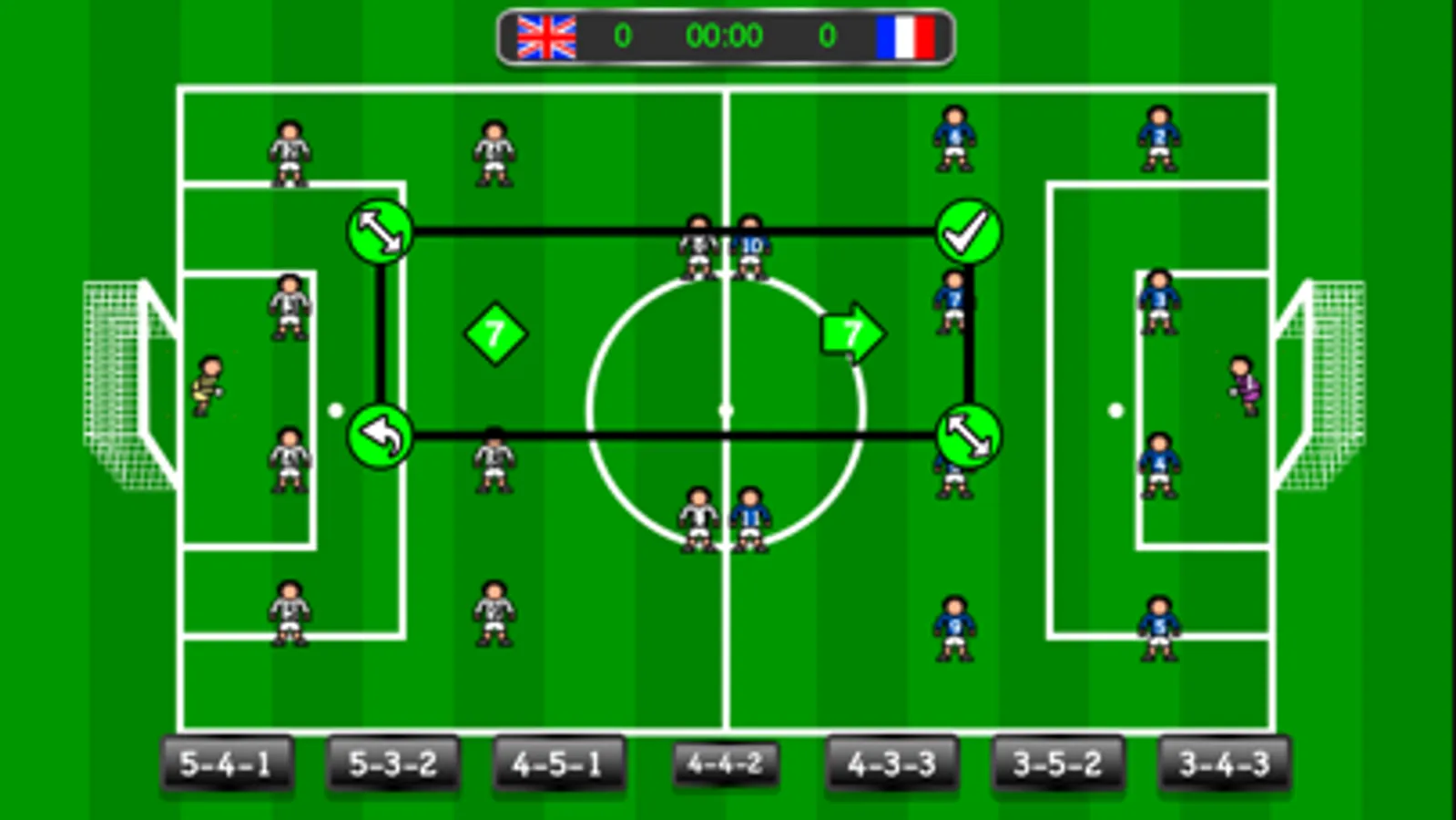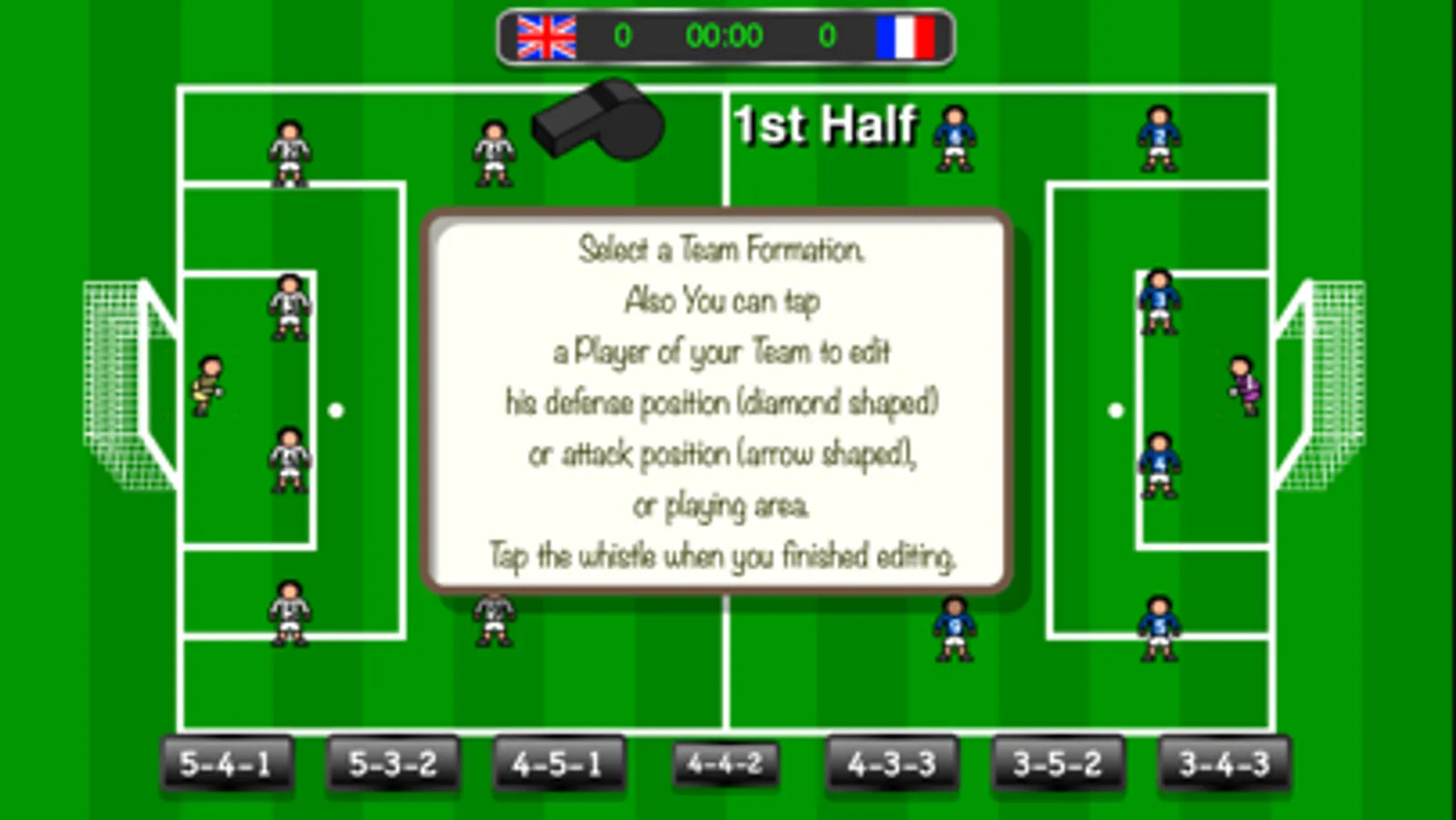 Choose a team (8 avalilable), improve their skills, choose the formation, modify the play areas of each player.