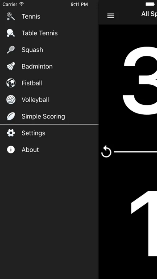 In English scoring system - first player to reach 9 points wins the game. However, if the score reaches 8–8, the player who was first to reach 8 decides whether the game will be played to 9, or to 10. If you are playing to 9 and either player has reached 9 points, swipe left to end the game and a new game will start automatically. If you are playing to 10 - continue scoring as usual by swiping up / down.