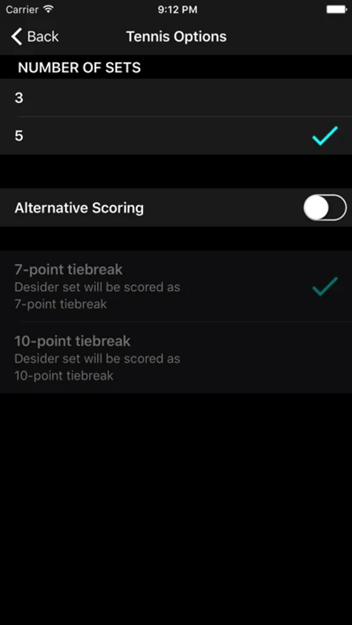 - Options to for changing how the last / decider set is scored in Tennis (7 or 10-point tiebreak) (PRO)