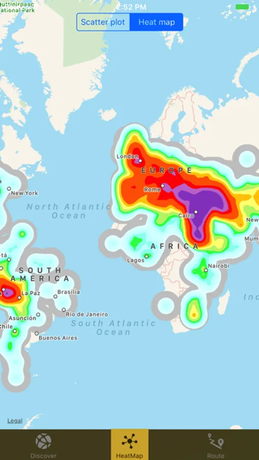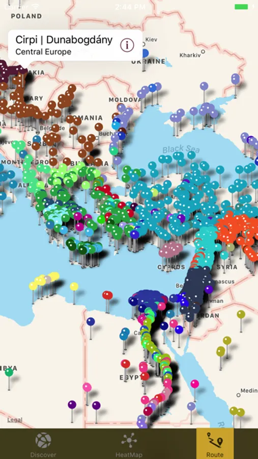 AncientPin App proudly presents an innovative technology called the Archaeological HEATMAP, which visually represents the density of ancient places on the World Map. This feature allows you to perceive the density of points regardless of the zoom level. AncientPin utilizes advanced data infrastructure to visualize billions of dots using a density function.