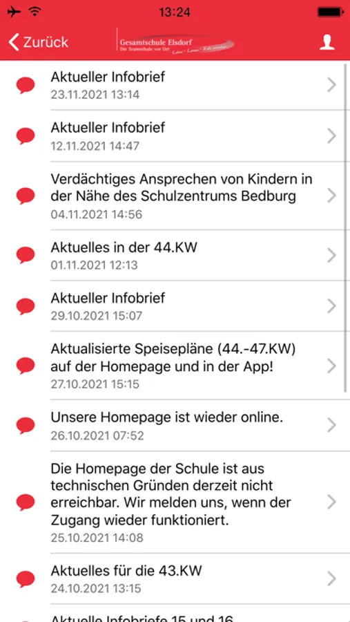 Hier werden alle aktuellen Informationen, sortiert nach KW (Kalenderwochen), zu Beginn einer jeden Schulwoche hinterlegt. Zusätzlich sind alle Push-Nachrichten hier noch einmal zu lesen.