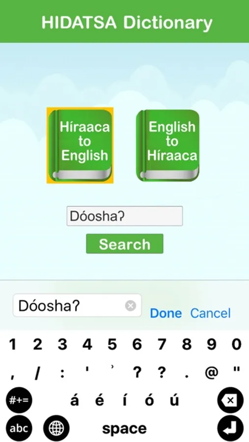 • If you haven't already, download the Hidatsa Keyboard - Mobile from the app store to type your search in Hidatsa!