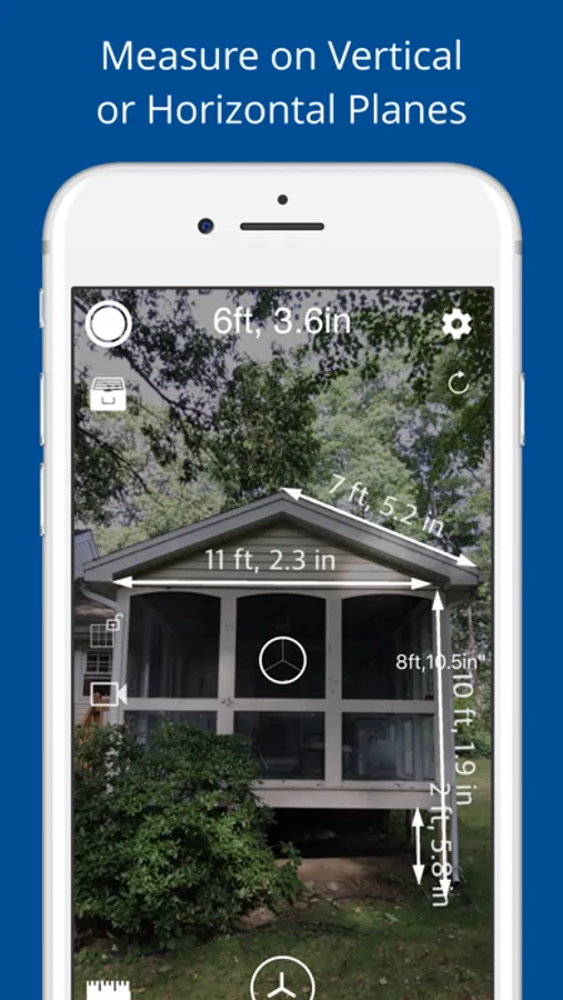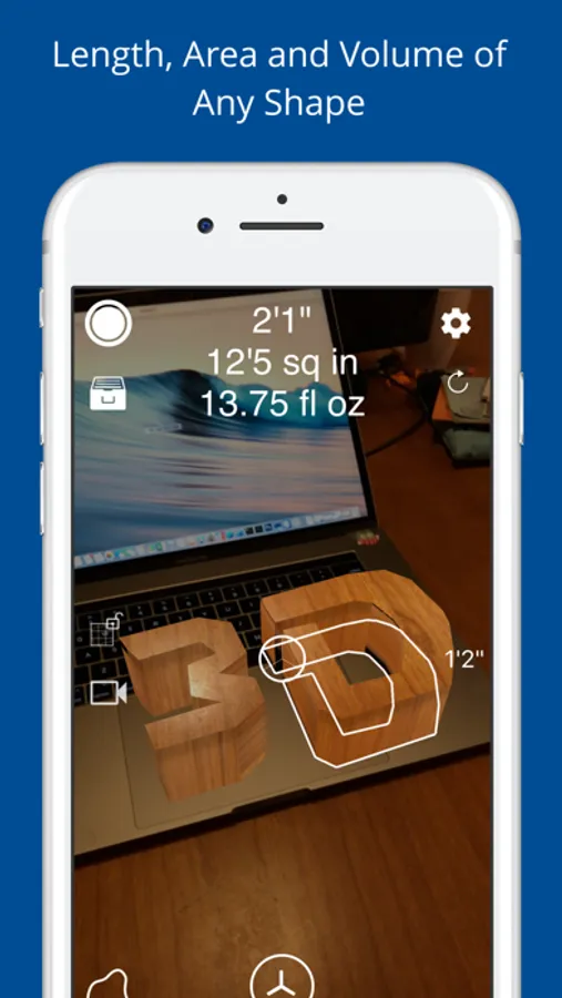 Point the camera on the floor or wall and tap on screen. Measure 3D will instantly calculate the length and area. You can even convert any measurement to 3D and measure its volume.