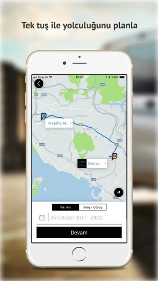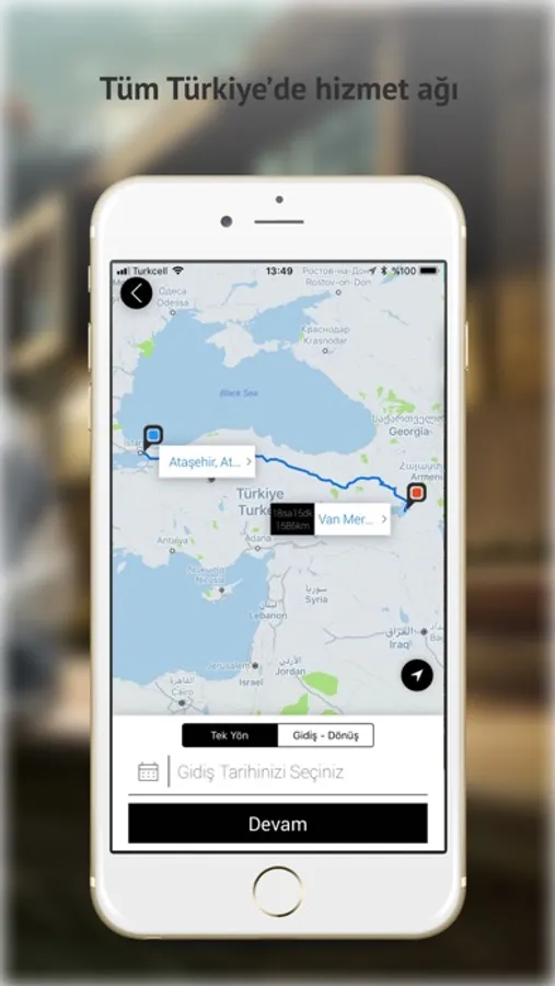 - Harita üzerinde kalkış ve varış noktanızı seçerek yolculuk güzergahınızı belirleyin.