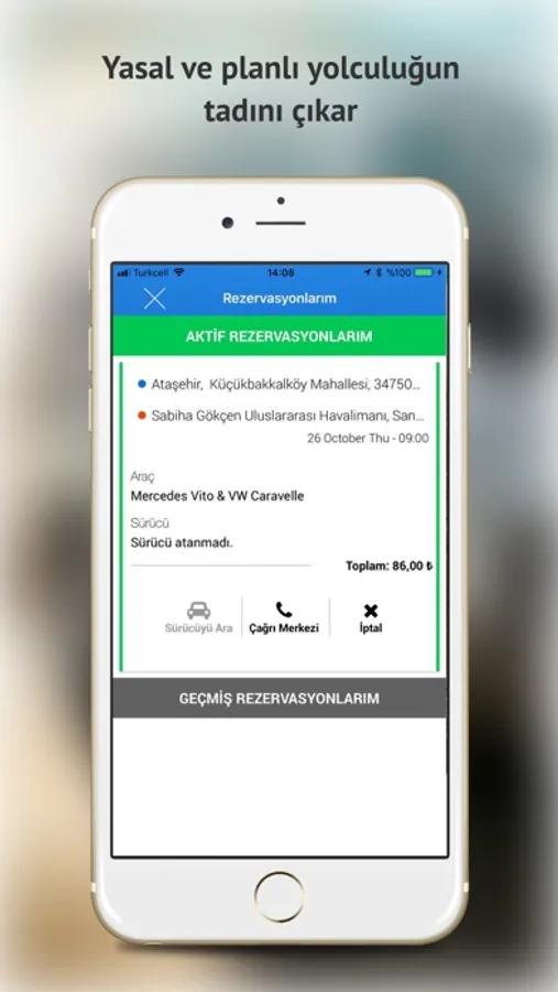 - Rezervasyonlarınıza dair araç ve sürücü bilgilerini uygulama üzerinden takip edin.