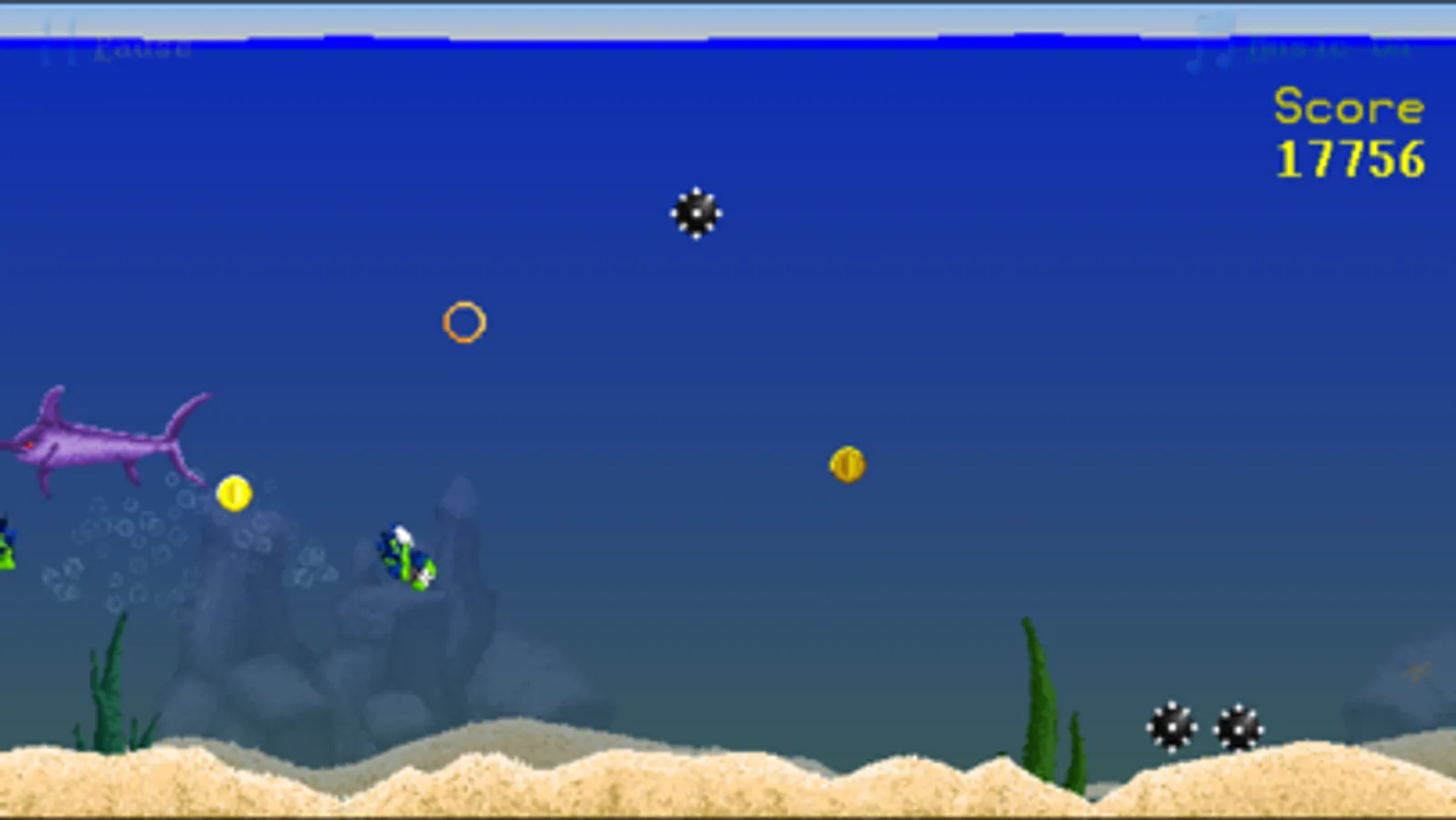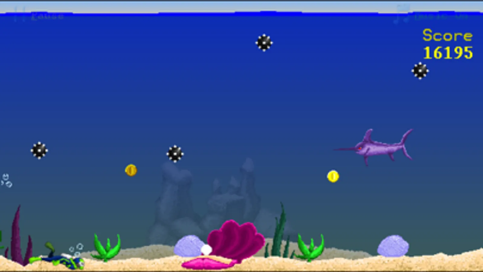 Avoid murderous mines, snappy sharks, clappy clams, and all sorts of underwater dangers in this exciting arcade game!