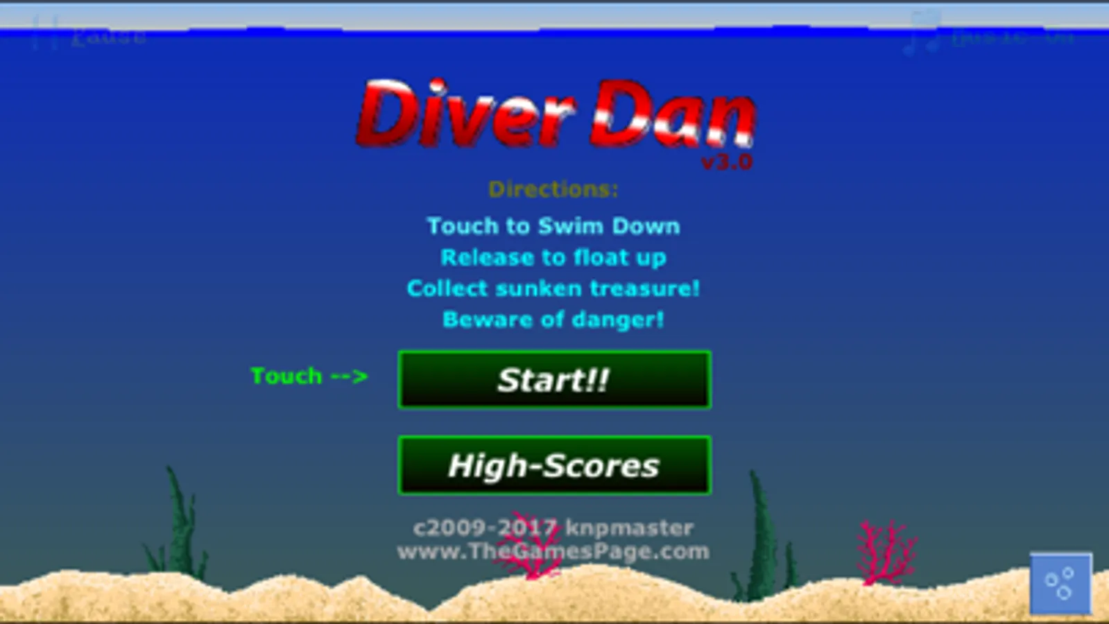 Tap to dive, release to surface, and try to stay alive so you can collect precious coins and other fun treasures!